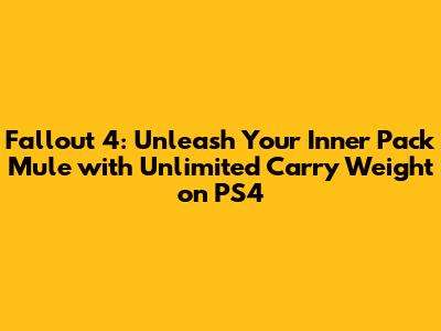 So, there you have it! While getting true unlimited carry weight on Fallout 4 for PS4 requires a bit of creativity and a willingness to work within the limitations of the platform, it's definitely achievable. By finding the right mod, following the installation instructions carefully, and using some smart inventory management strategies, you can finally become the wasteland scavenger you've always dreamed of being. Now go forth and loot everything in sight! Just remember to back up your saves, and happy scavenging!